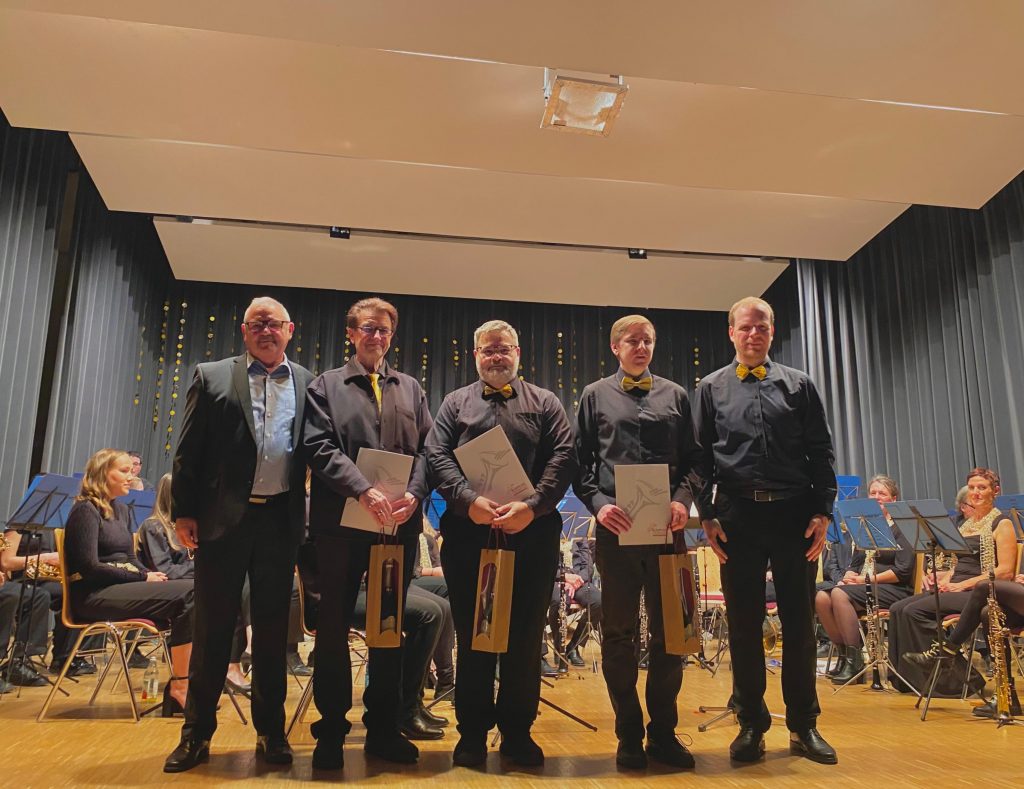 Am Abend führte Thomas Klehr vom Blasmusikverband Mittelbaden Bezirk Hardt drei Ehrungen für verdiente Musiker durch: Andreas Axtmann für 25 Jahre, Christian Kunschner für 40 Jahre und Hans Belzer für 50 Jahre aktive Mitgliedschaft.